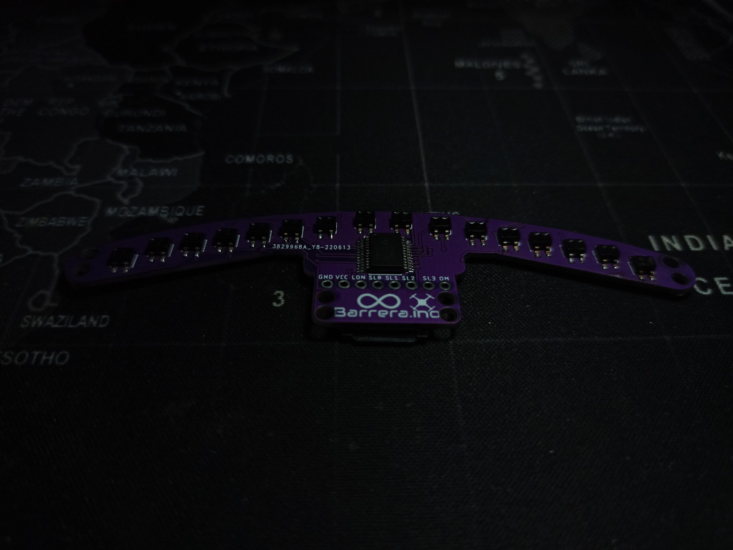Este es un modulo de 16 sensores QRE113gr » IR LED / fototransistor » multiplexados por medio del chip 74hc4067 diseñada especialmente para seguidores de linea de competencia.