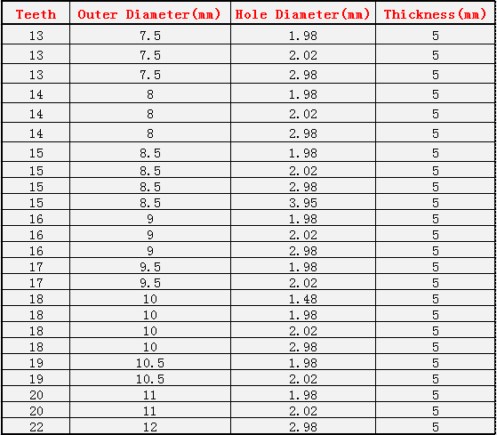 Número de dientes: 9T / 12T / 14T /15T/16T